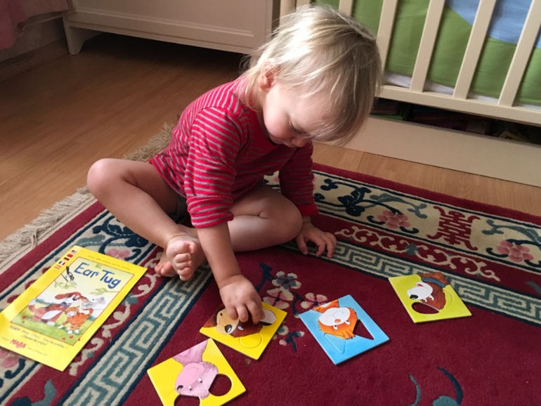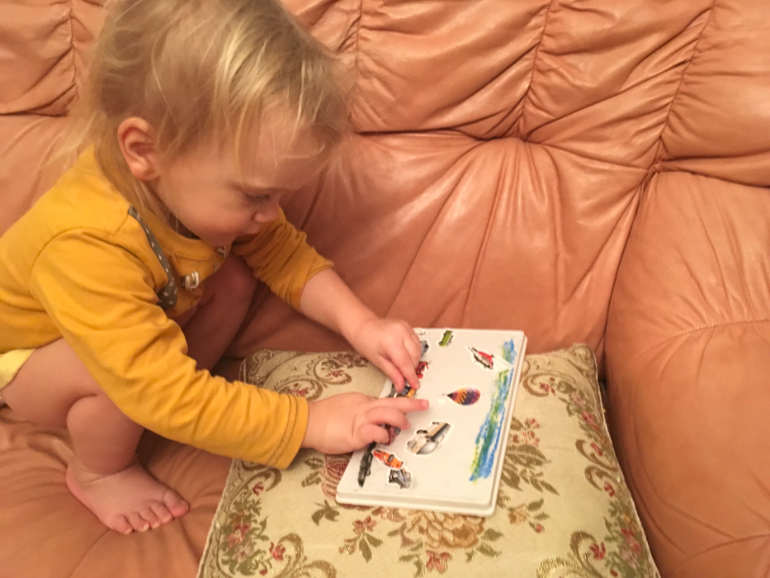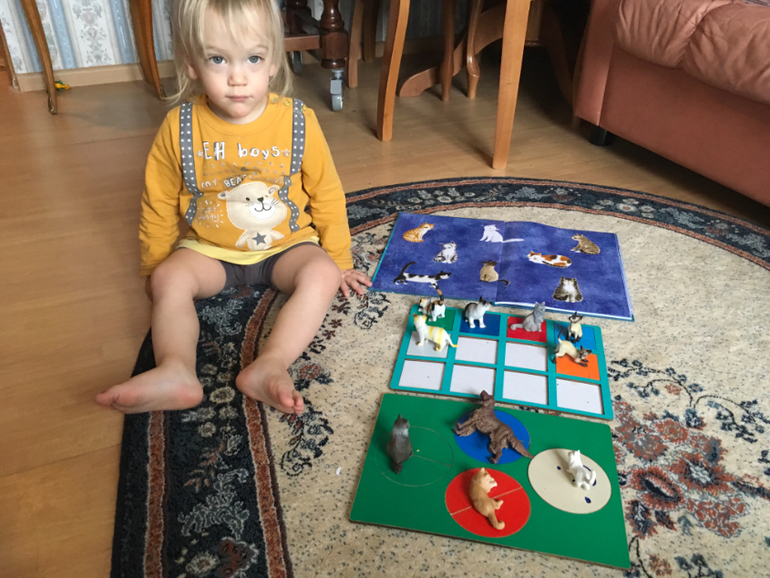 Не идёт у нас вот эта игра на развитие фонетического слуха. Помню, что старшие справлялись на раз-два! Я за ширмочкой дребезжу инструментами, человек угадывает, чем я дребезжала. Набор погремушек элементарный. Показывает нужный самым последним, ха-ха) может так вредничает?