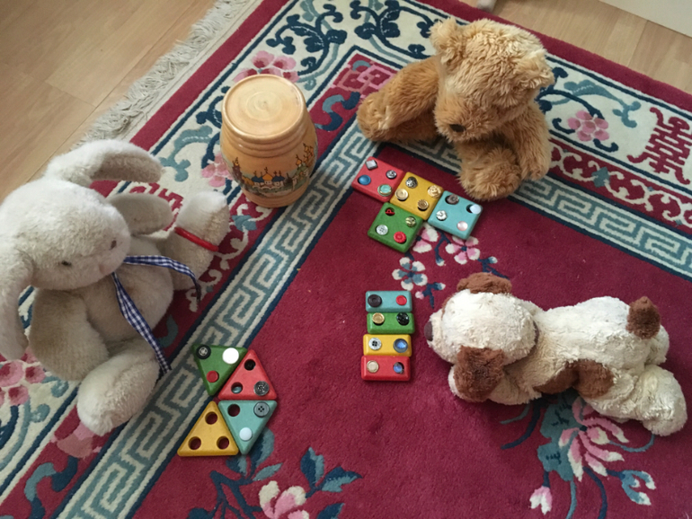 Ну и эта игра прижилась у нас. Наша первая настолка. Играем по правилам, иногда зовём плюшевых друзей.