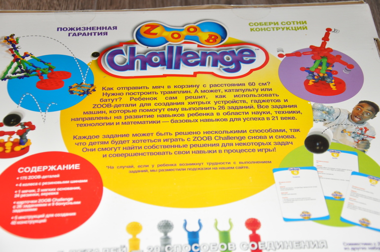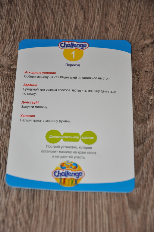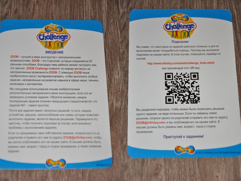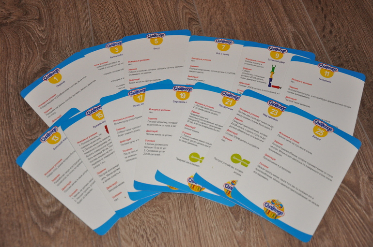 Помимо инструкций, есть еще двусторонние карточки с заданиями (в этом и состоит challenge).