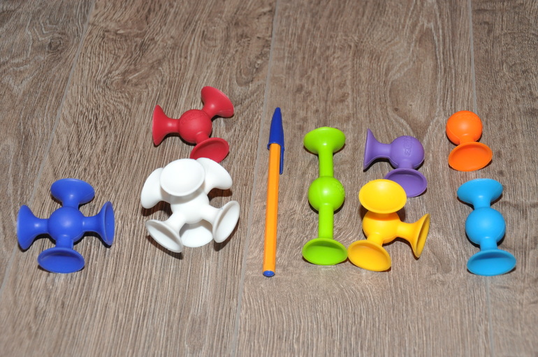 Материал очень качественный: не пачкается, не пахнет и не меняет форму, а цвета, сами видите, сочные и яркие - малышам понравятся! Крепятся и отлепляются присоски легко.
