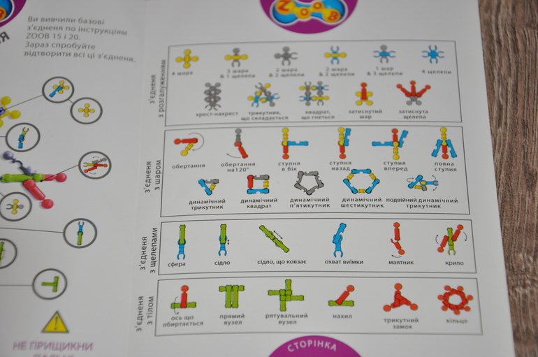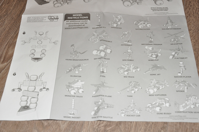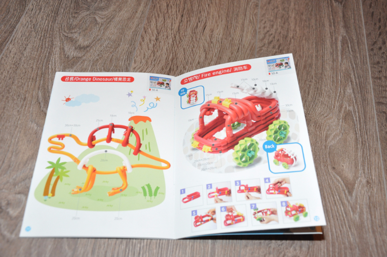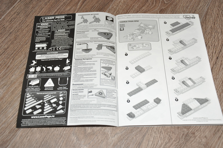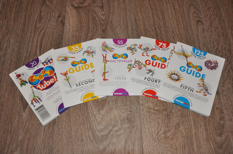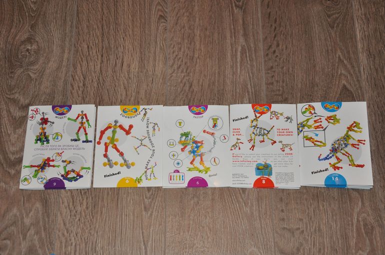 Инструкций тут целых 5 - по количеству используемых деталей, и, соответственно, уровню сложности. У нас они, правда, на английском и на украинском (хотя покупали у нас), но пониманию и контруированю это нисколько не мешает))