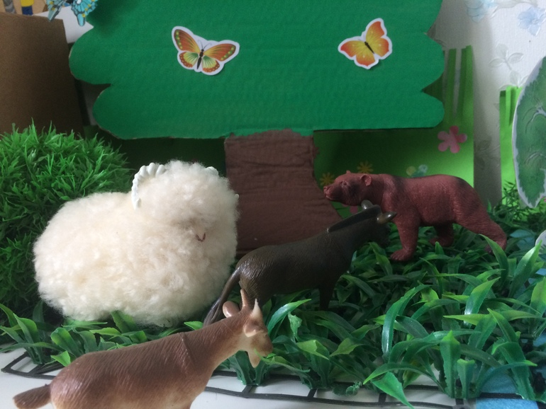 Их пугал медведь, цепляли чудовища-коряги, окружали мрачные деревья,но Ослик, Козочка и Овечка не останавливались, не испугались, и наконец выбежали на полянку.