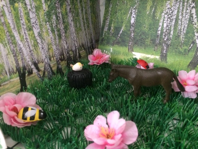-встреча с птичками-звуковые дорожки( в альбоме наклеила ослика и всех героев сказки, ходим в гости и поем-ООО)