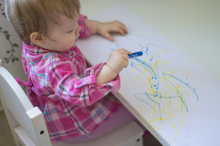 Следующая ступень рисования в стуле, так надо отмывать только Тасю, стул, соседнюю стену и меня, всего ничего). Главное, не забыть сфоткать в самом начале процесса, а то и фотик выбрасывать отмывать придется.