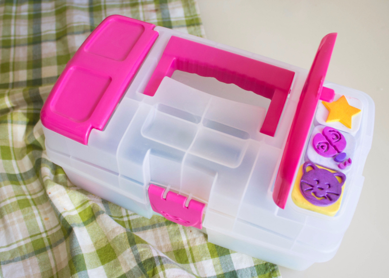 Пока изобрела способ хранения вот в таком чемодане для мелочей. Его можно таскать с места на место.
