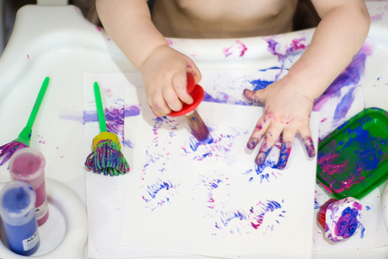 Я не часто на такое готова, но бывает весело. А что посадил ребенка в центр красок налил и в уголок, чтобы не помогать мешать. Главное, потом быстро схватить в охапку закрашенного ребенка, донести его в ванную не прижимая к себе и стенам по дороге, ногой включить свет в ванной, замочить человека на полчаса и потом он сам уснет примерно на полпути к кровати. А вы в это время быстро скомкиваете все обои в мешок и прячете, пока муж этого не увидел и бежите пить кофеее в тишинеее.