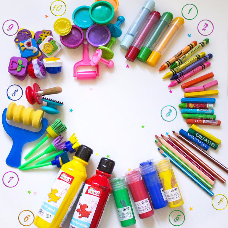 1. Маркерные штампы икеа. Сама не знаю почему они под номером 1, просто были дома, оставляют разные отпечатки на листе. Детям нравится.