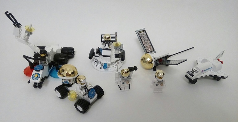 Но сегодня я покажу вам белоснежных красавцев. В десять раз бюджетнее популярного конструктора, но являющихся его аналогом. Это серия "Space" от Brick.