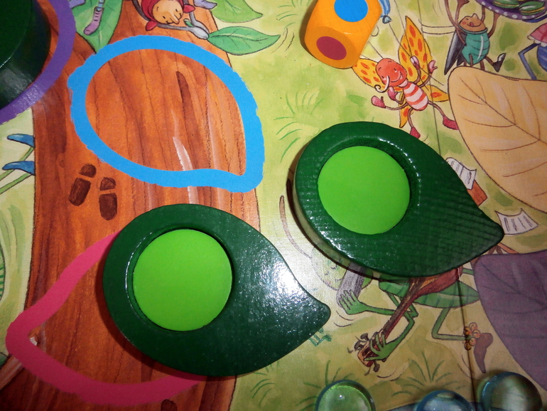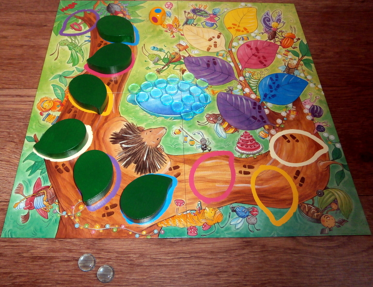 Как только все листочки попадут на клетки с закрашенными листочками игра закончена. Начинается подсчет росинок, у кого больше, тот и победитель.