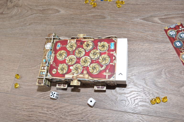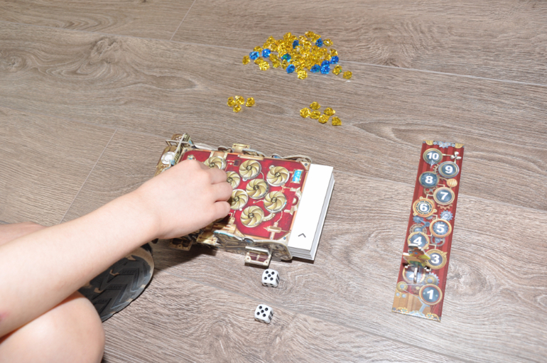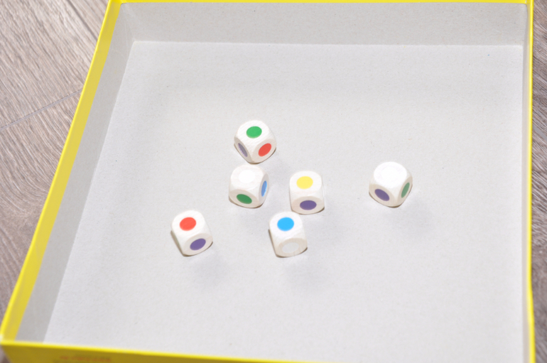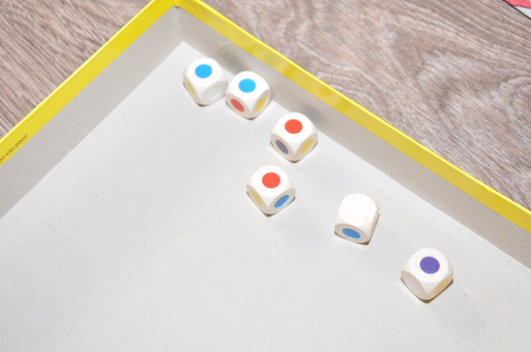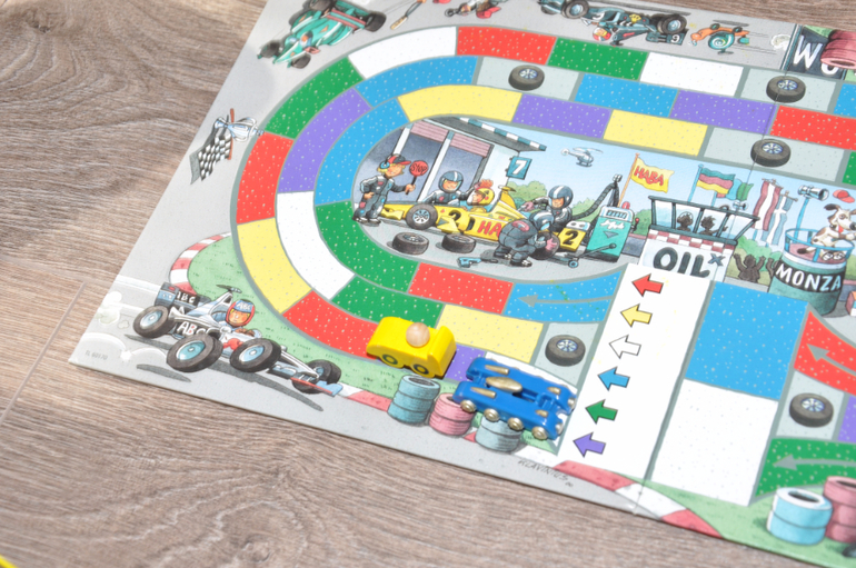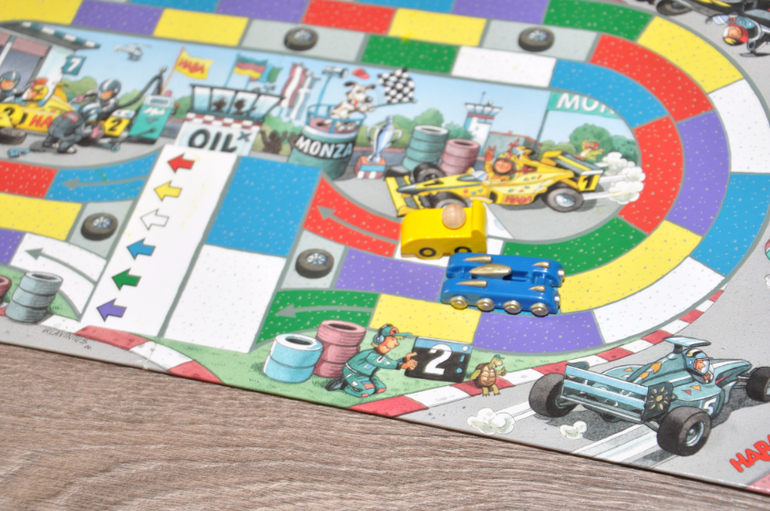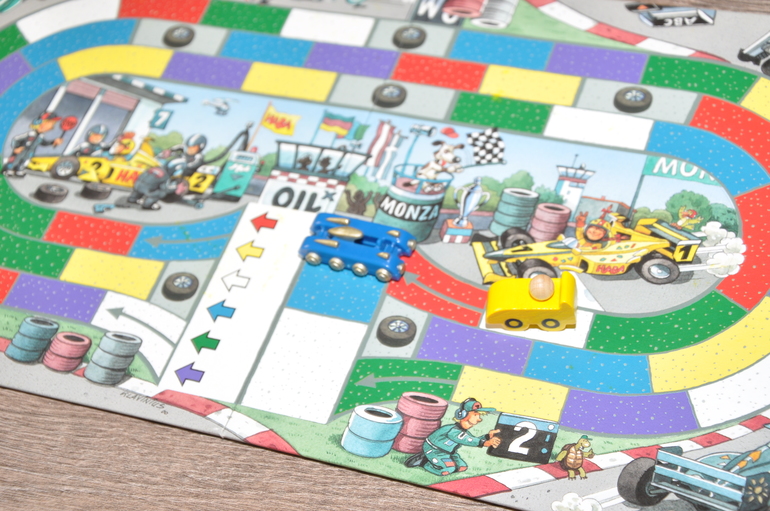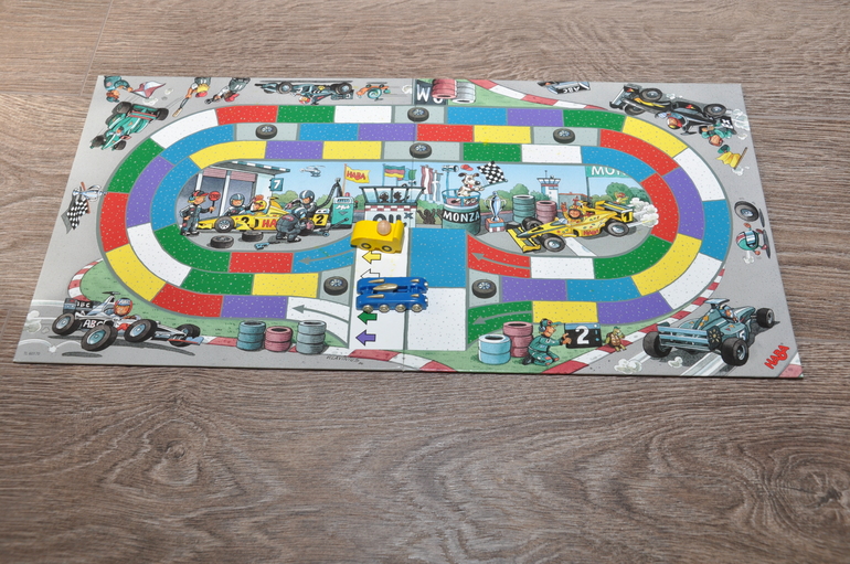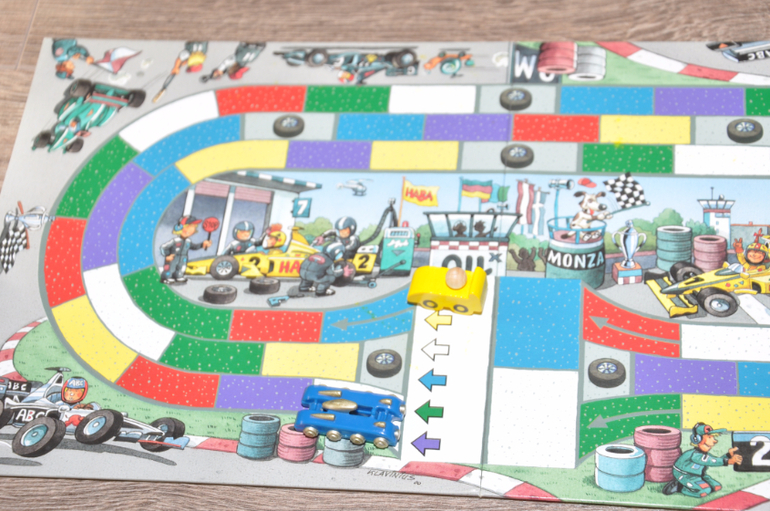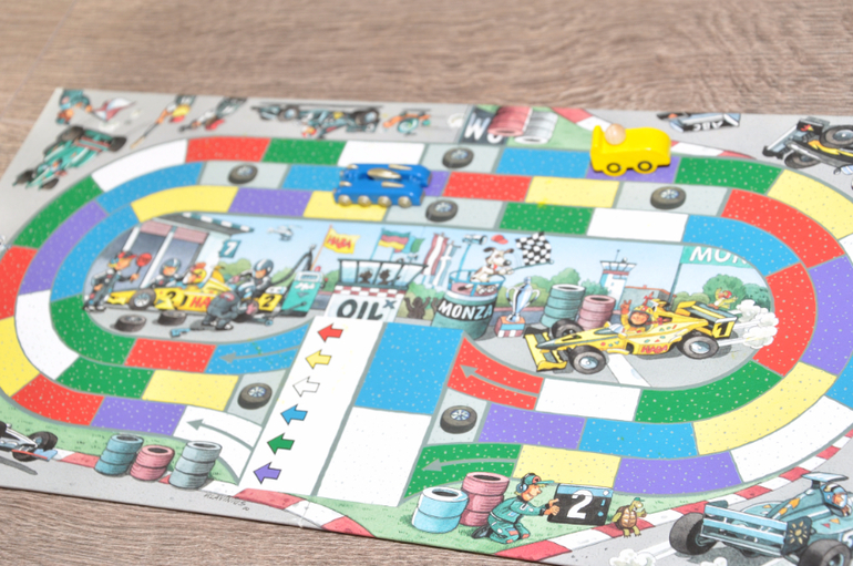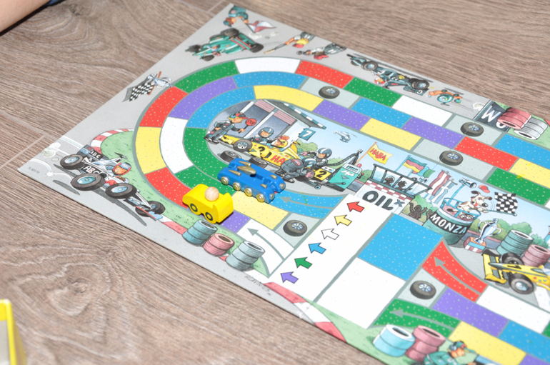 Правила тоже простые: выбрасывая кубики с цветами, довести свой болид до финиша первым.