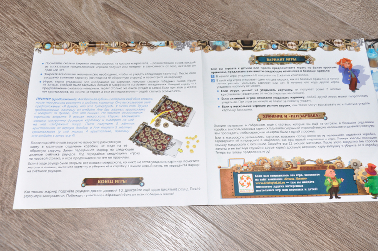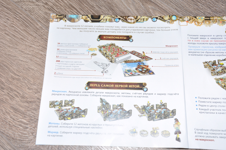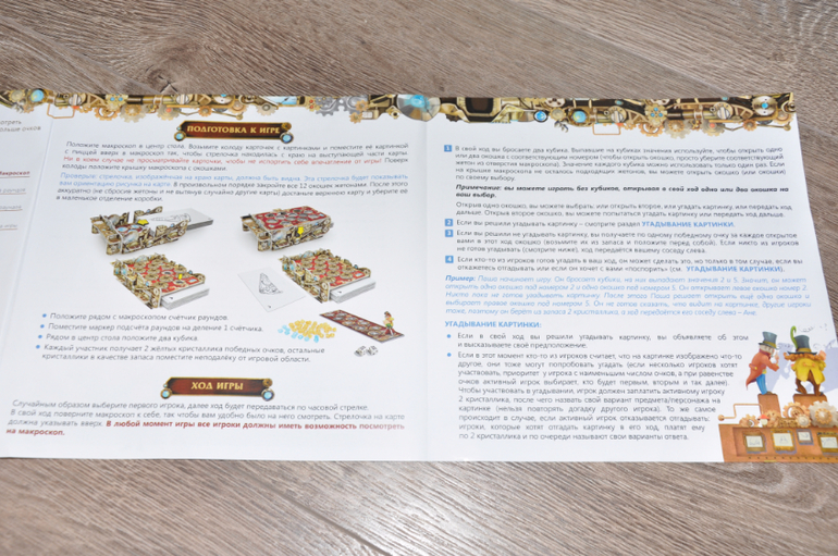 Правила (несмотря на то, что их описание занимает кучу места) достаточно простые - кидая кубики и открывая окошки с соотвествующими номерами, надо постараться угадать, что нарисовано на картинке в макроскопе.