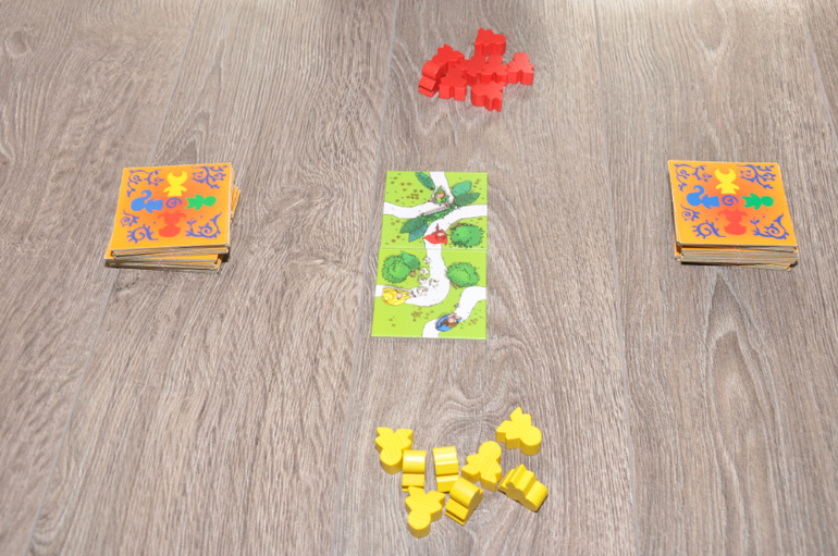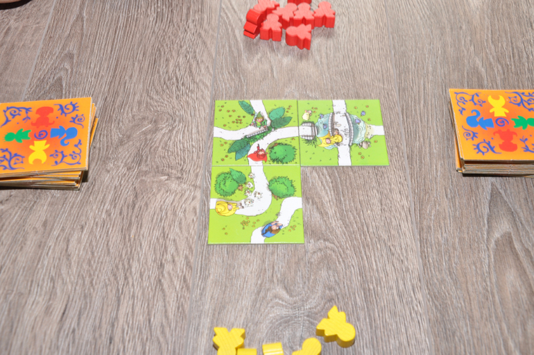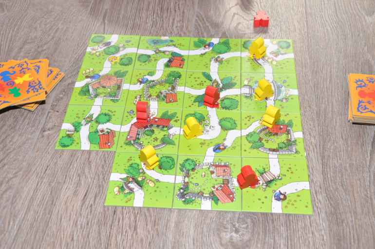 Правила игры коротко: открывая по очереди карточки из нескольких колод и выкладывая их на стол, надо создавать замкнутые с двух стороон дорожки, чтобы иметь возможность потом на них поставить фигурки своего цвета. Тот, кто быстрее всех выставит все фигурки - победитель.