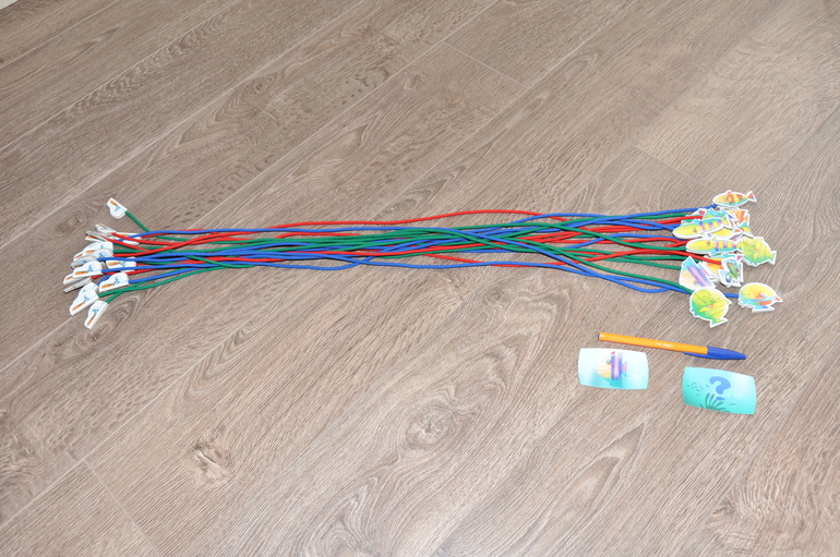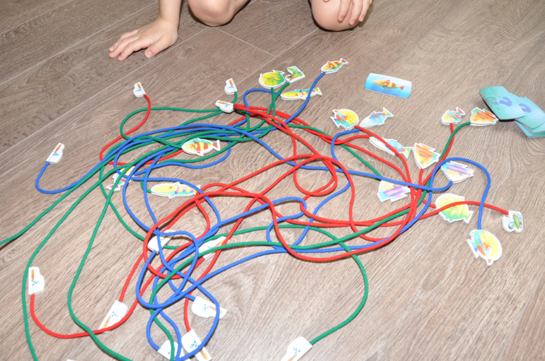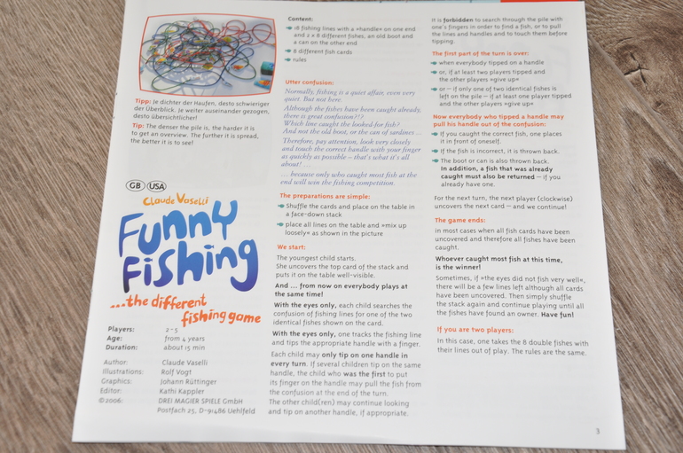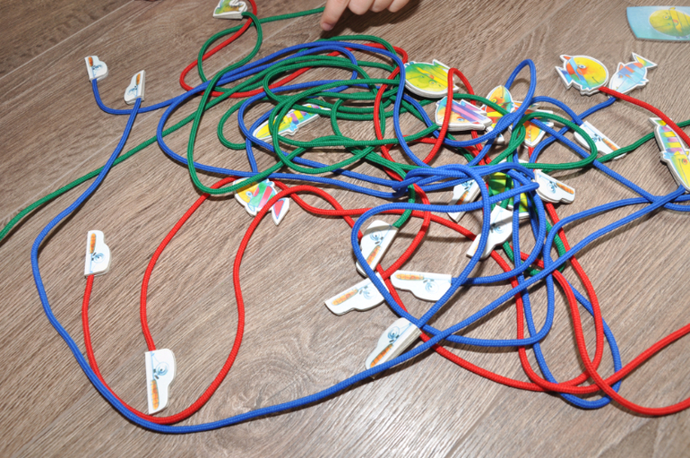 Правила простые - перемешать все удочки, а потом, открывая карточки с рабками, быстрее всех ухватить правильную рыбку за удочку. Если схватываешь башмак, то одна рыбка из твоего улова возвращается в реку.