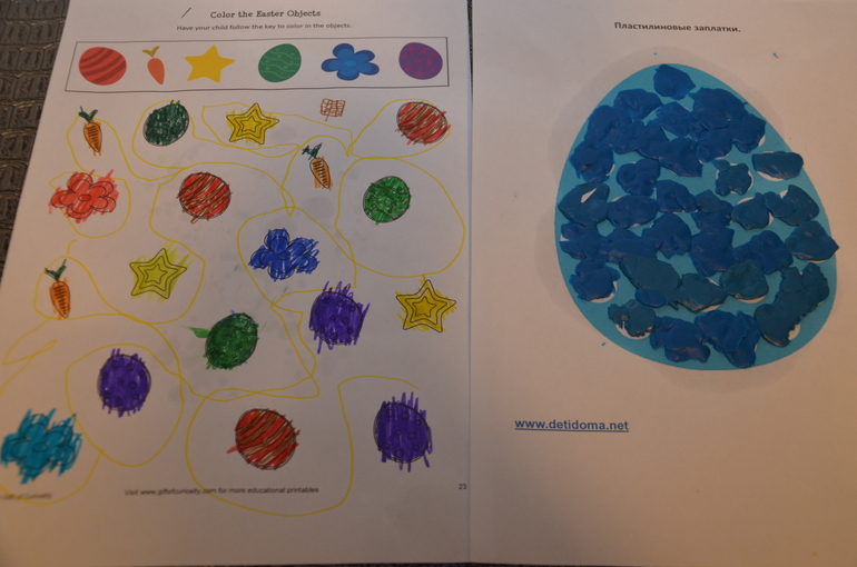 Было много заданий, сфотографировала лишь несколько. Последнее время в целях экономии краски печатаю и вставляю в файл, хватает на несколько лет) делали задания с прошлого праздника, потом стирали тряпочкой и может заниматься другой ребенок, а то нам все время все нужны одинаковые. Покажу те, что были без папки.