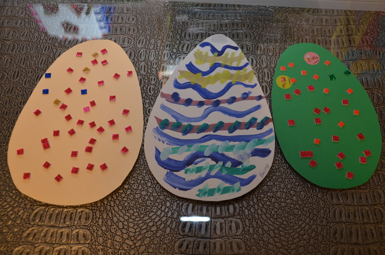 Украшали яички - по порядку Ваня, Варя и Саша. Младший старался)))