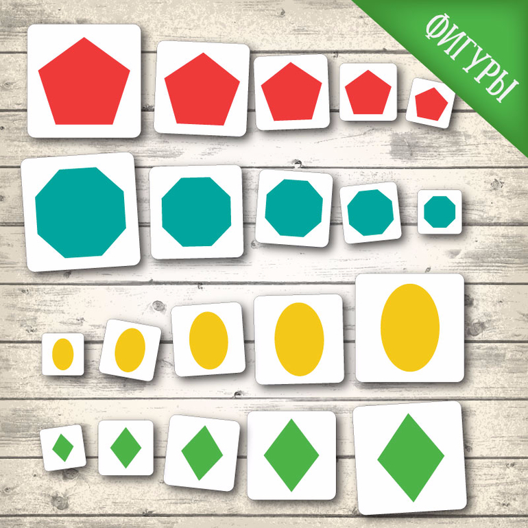 - 16 карточек с геометрическими фигурами и формами