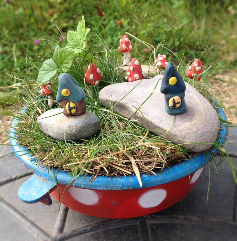 Еще сделали малюсенькие домики из пластилина, разместили на камнях. Очень симпатичная деревушка получилась.