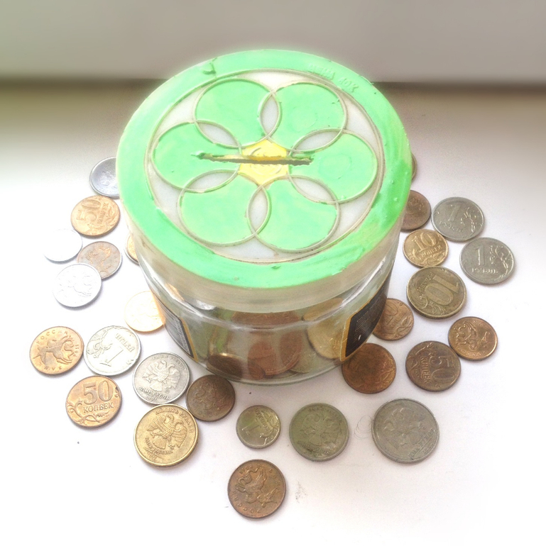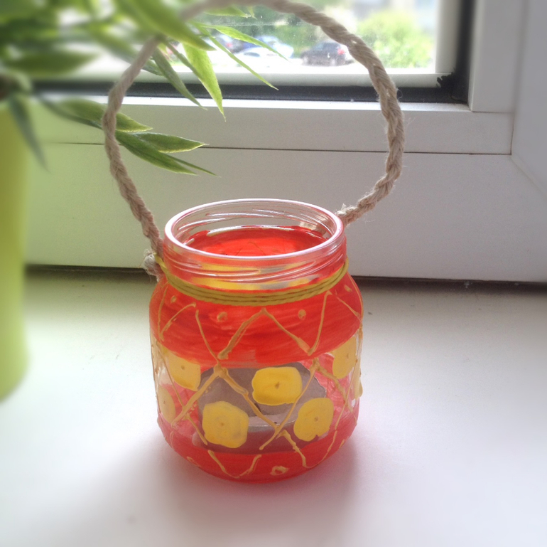 Расписали баночку акриловыми красками. Я помогала, конечно.