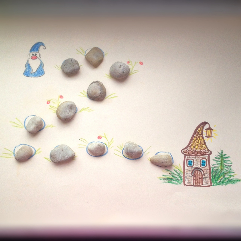Наш гном немного заблудился, и мы выкладываем ему дорогу из камней.