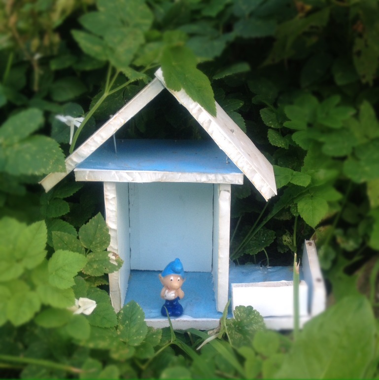 А с детьми сделали вот такой домик для гномика (нашла дома какую-то пластиковую доску):