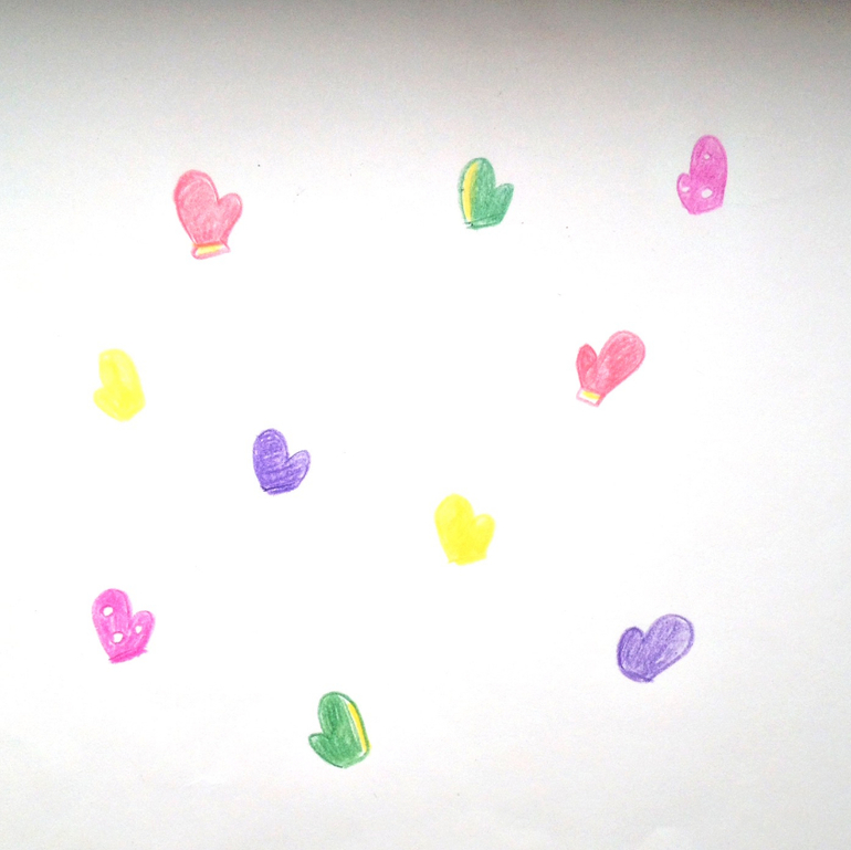 Гномы так обрадовались подарку, что растеряли свои варежки. Помогаем подобрать пару. Соединяем.