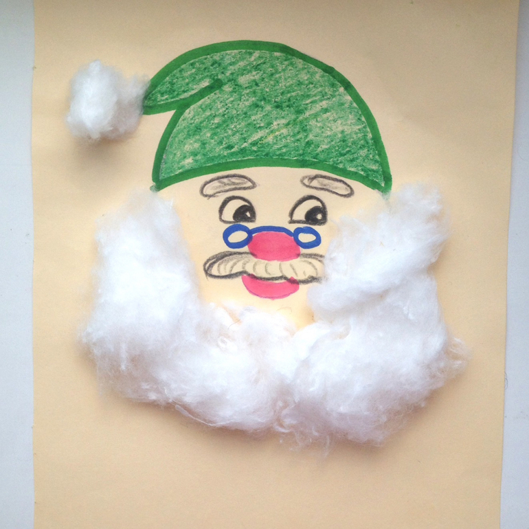 Потом делаем бороду из ваты.Тимоша сказал, что это дед Мороз))