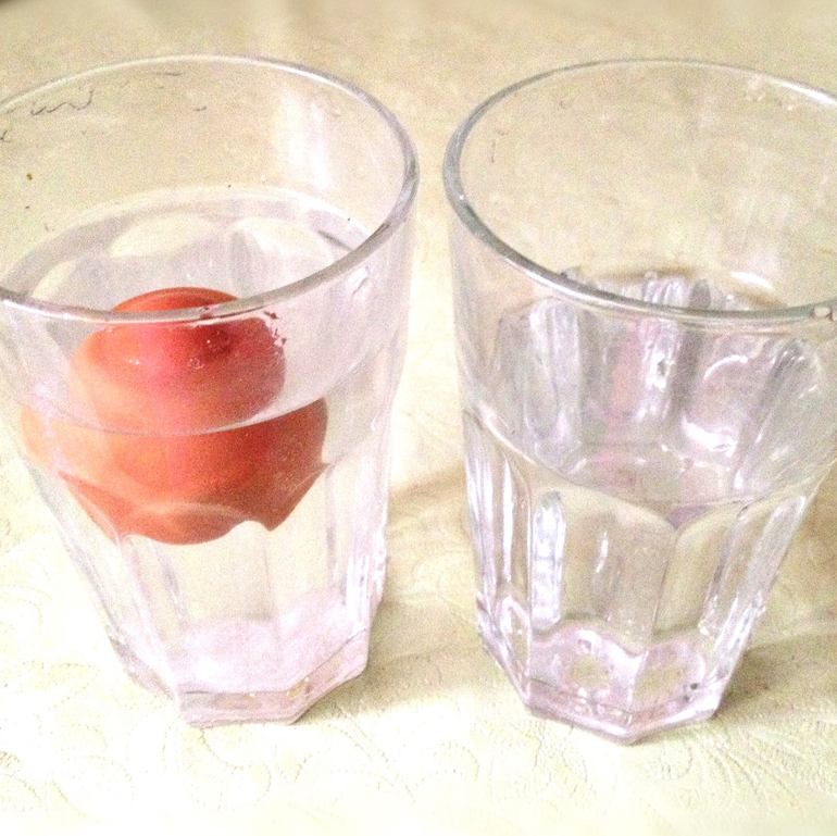 Сначала опускаем яйцо в обычную воду, оно тонет. Потом в крепкий раствор соли, здесь не тонет. Соленая вода держит яйцо на поверхности.