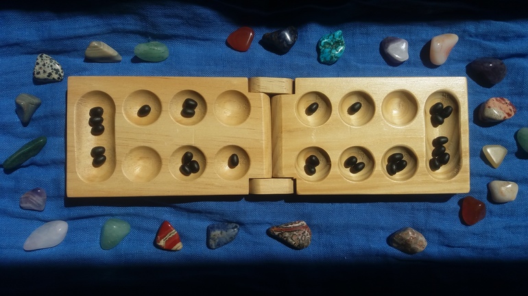 и до серьезной глубокой настольной игры «Калах». «Калах» - это одна из древнейших настольных игр, относящаяся к семейству игр «Манкала». Это логическая игра для двоих с простыми правилами, но с широкими возможностями для тактической импровизации. Принципы игры «Калах» отражают особенности земледельческих культур Африки. Об этом свидетельствует устройство игрового поля и обозначения действий игроков. Игровое поле имеет углубления, которые называются лунками, а ход игрока символизирует посев (в африканских странах до сих пор камни заменяются специальными зернами или бобами). Таким образом, смысл игры заключается в прохождении земледельческого цикла, от посева до сбора урожая в амбар, а цель игры - избежать голода, ситуации, когда лунки игрока оказываются пустые.