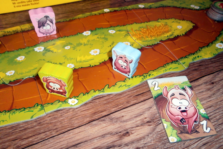 Если игрок слева угадал, то уже он перемещает свою хрюшку на количество клеток указанное на карточке.