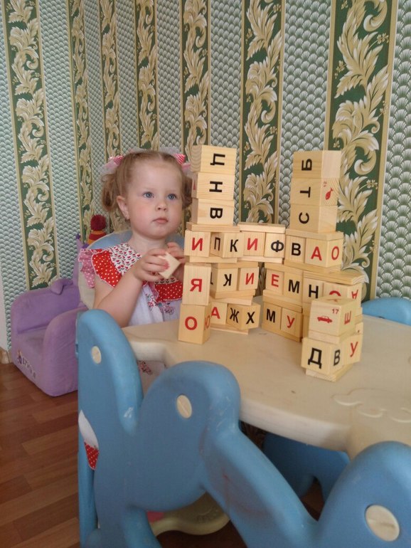 Ещё любит создавать башни и города из . Если играем вместе, то стараюсь ставить задачи: «Дай большой синий тонкий квадрат» или «длинную черную палочку»..