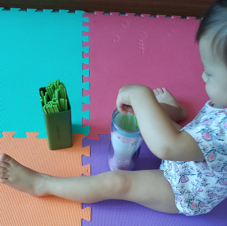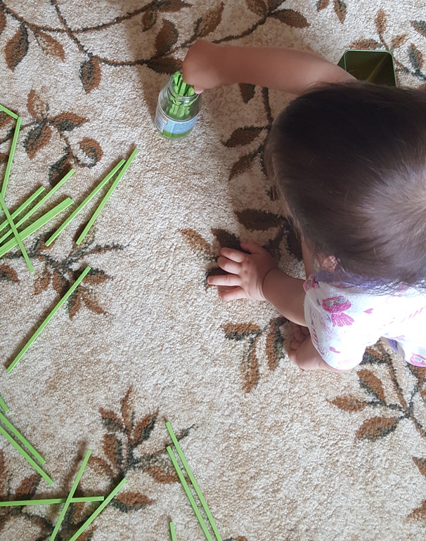 Вставляли палочки в банки с разными отверстиями, пытались их считать: