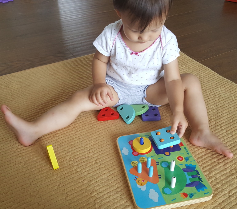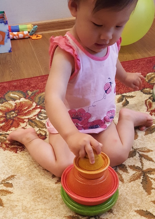 Этим сортером от Джеко играем с 6 месяцев, затем спрятала месяца на 2, сейчас достала, идет опять на ура. Справляется хорошо.