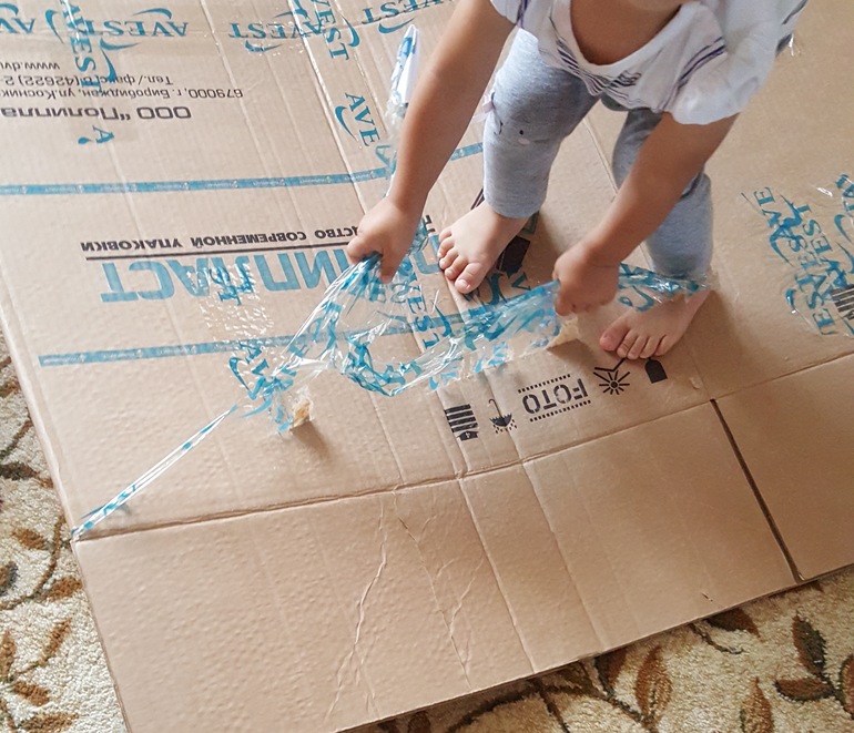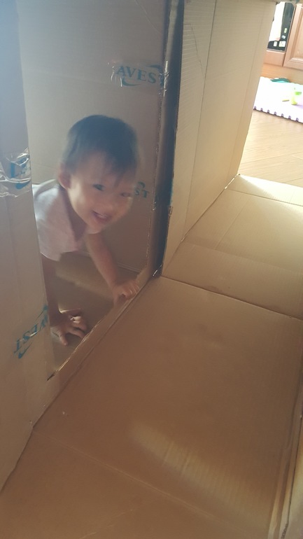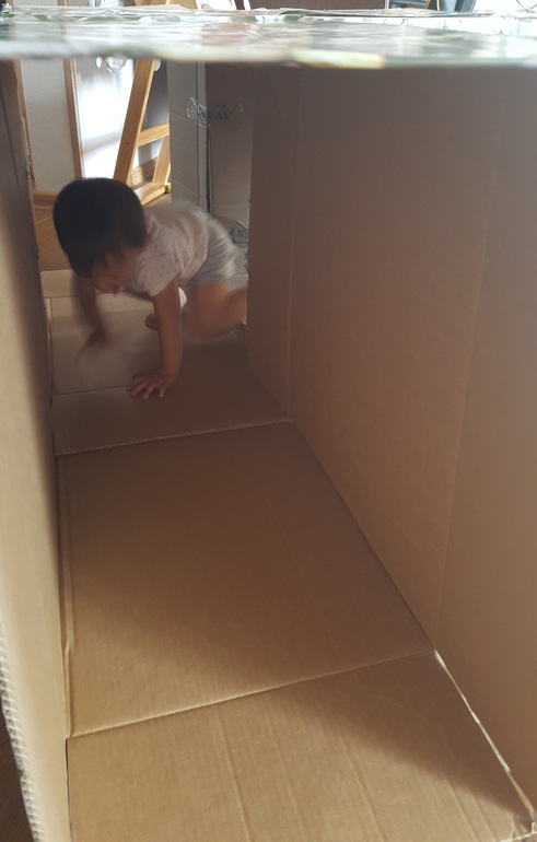 А из коробок мы сделали вот такой лабиринт с тремя входами. Ребенок в полном восторге:
