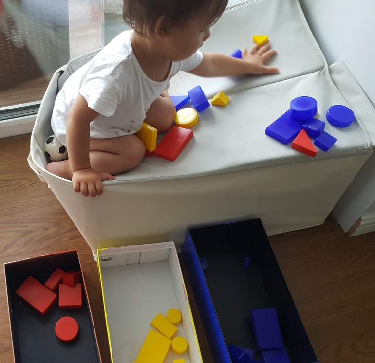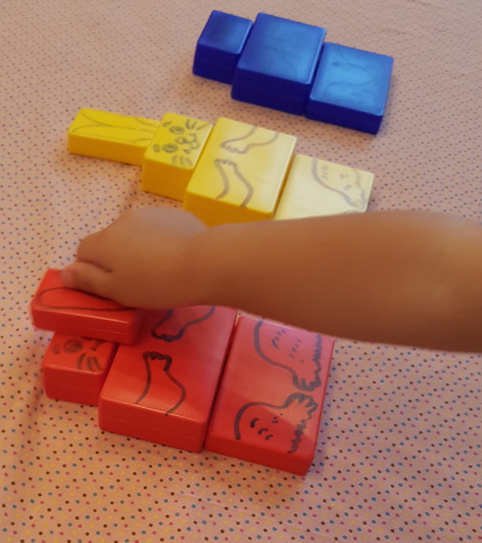 Сейчас мы очень много времени уделяем геометрическим формам, цветам, творчеству, логике, обыгрыванию книжек и сюжетным играм, а также моторике и сенсорике. В такой последовательности и буду рассказывать об играх.