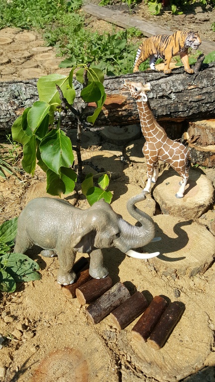 Катали животных в поезде, который сделали с помощью кубиков и колечек Батат:
