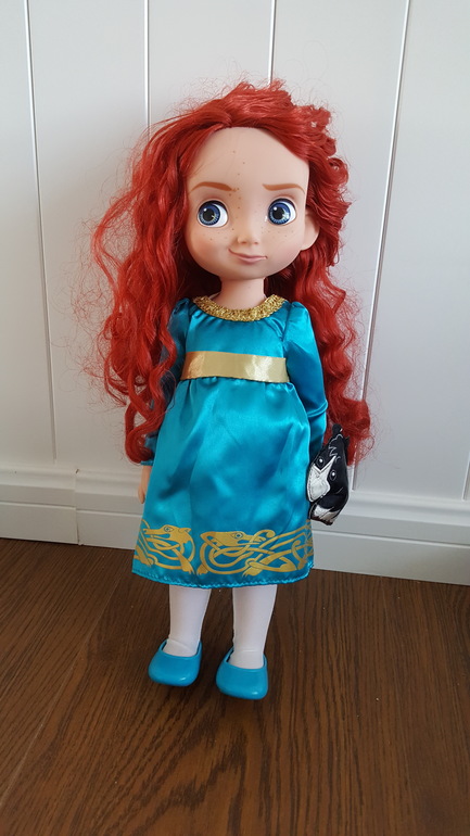 Появилась подружка. Вот эта усмехающаяся кукла Мелисса теперь сопровождает нас во всем и везде - и на горшке и за столом. Периодически меняем ей наряды и украшаем бусами.