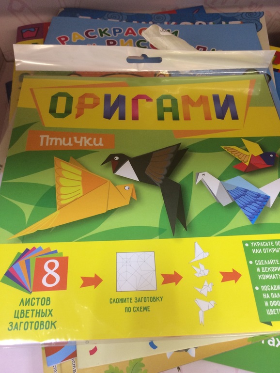 Страна вопросов, ответов и полезных советов (Вопросы, Советы, обмен опытом , полезные ссылки)В магазине "Пятерочка" продаются клевые наборы оригами. Стоят по 50 руб с копейками, радости приносят много. Если разберетесь с инструкцией) Птички с глазками и рисунком на крыльях, есть набор с птичками, цветочками и бабочками. Скупили всё!)