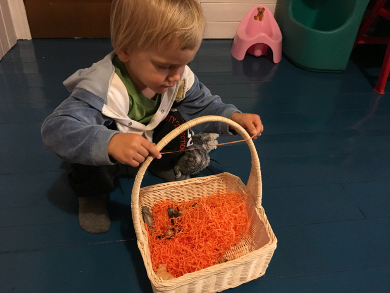 Сенсорная коробочка для двухлетки. Возился минут тридцать - обустраивал кошкам лукошко. Вот и дождалась своего часа - наша "корейская морковка"), как тут выразилась одна хорошо знакомая мне девушка)