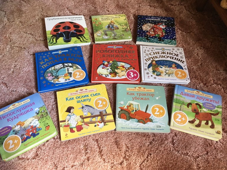 Безумно рад был снова увидеть Карлхена, Истории фруктовой фермы, книжки с тактильными вставками и озвучкой.