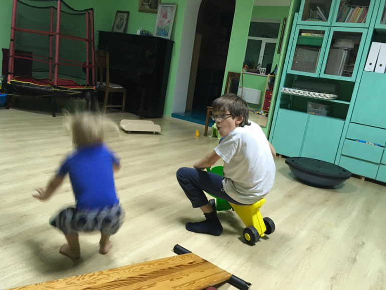 Освоен трехколёсный велосипед, самокат с переносом веса на поворотах, лестницы с самыми крутыми ступенями, прыжки с разных высот.