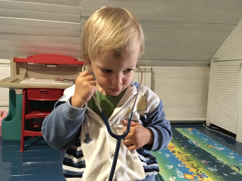 Игра в доктора на пике популярности во многом благодаря тому, что обнаружился набор, доставшийся в наследство от старших. Подлечили всех кошек, ну и отмыть причиндалы от микстуры - особо полюбившийся ритуал. Здесь у Виктории шикарная и подробная инструкция как играть в доктора. Пробовали играть в магазин, но пока не проникся.