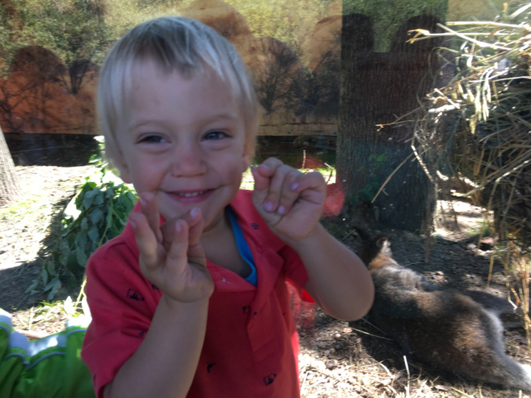 Показываем, что кенгуру за стеклом, как выяснилось, маленькая, как кошка и совсем не желтая., как в книгах....