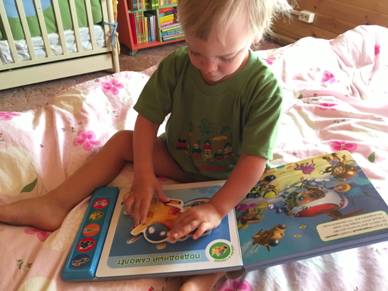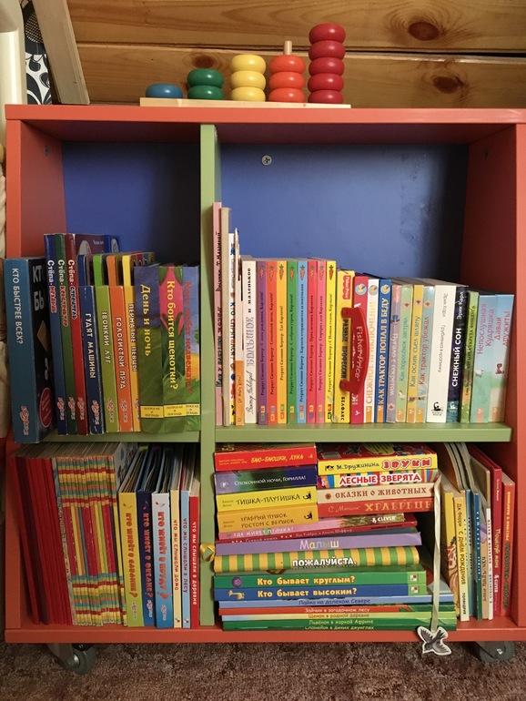 Здорово, когда в процессе принимают участие другие люди, не особо осведомлённые, что и как лучше читать ребёнку в этом возрасте. В результате читалось все, что было под рукой и зачастую то, что мне бы и в голову не пришло предложить именно сейчас. Слуховое внимание выросло, объём текстов увеличился, а в моем присутствии по-новой освежили полочку с картонками, что тоже не плохо.
