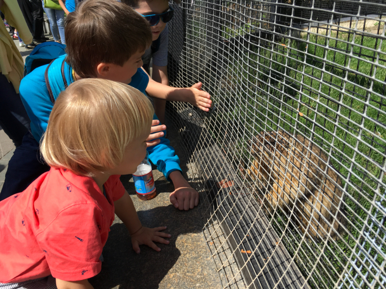 Сурок - одно из немногих животных, с которым удалось пообщаться поближе - сквозь сетчатую решетку.. толстенький, общительный и холёный - дети были в восторге) ну и мы за компанию.