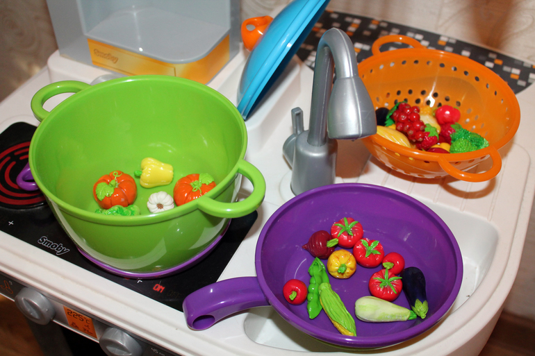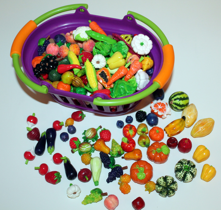 А теперь про наши игры с фигурками из полимерной глины). Сначала мы, конечно, поиграли в супермаркет - загружали корзины и несли их на кассу!