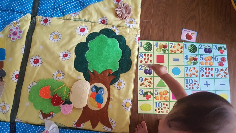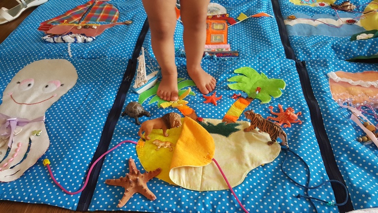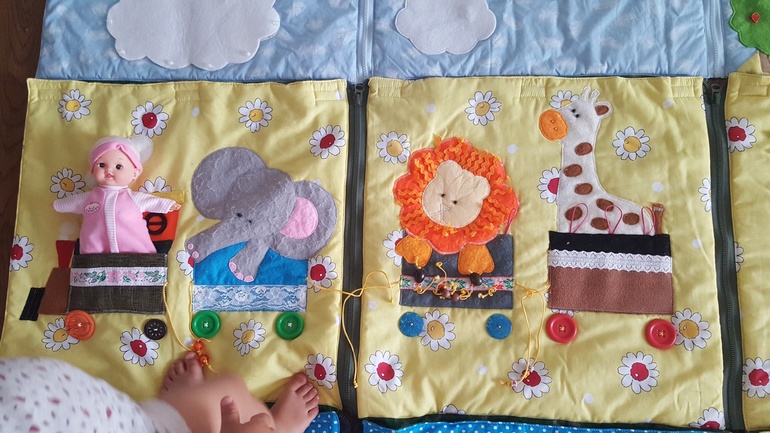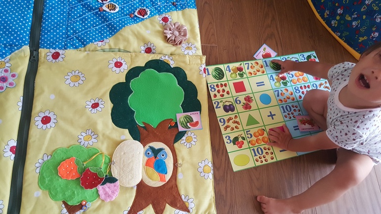 А Коврик заказывала с сайта ярмарки мастеров, он у нас с 4 месяцев, и всегда актуален. А дальше можно и как пазл собирать его. Со следами игра и правда интересная, попробуйте, можно по-разному обыгрывать.