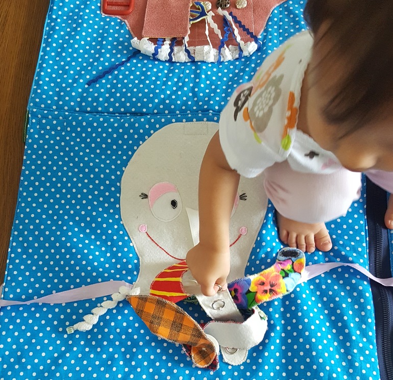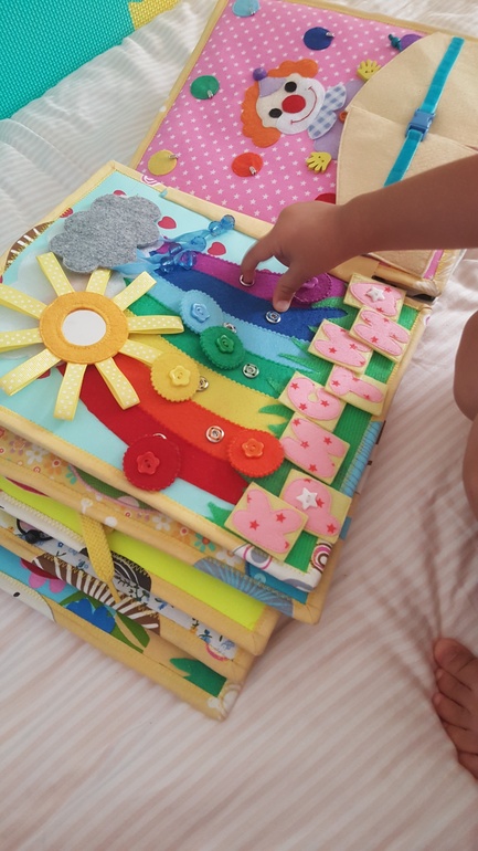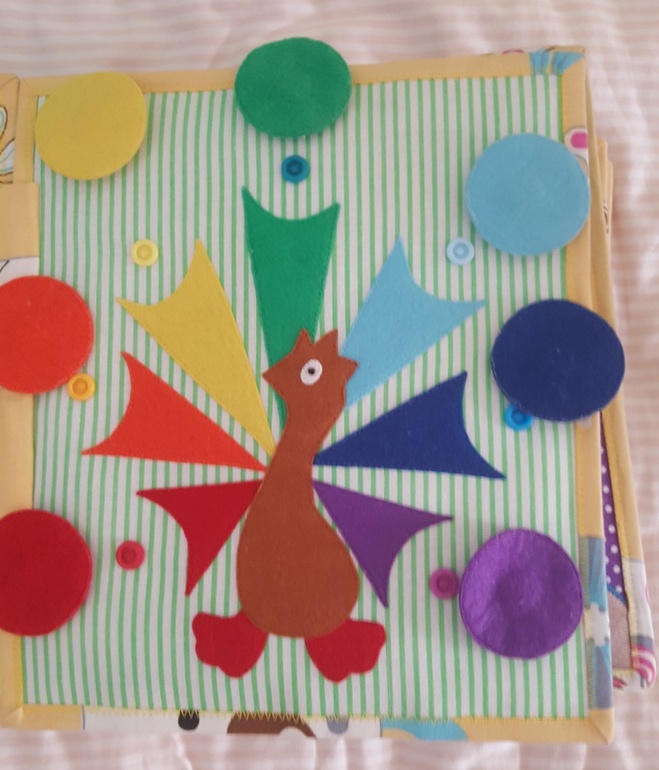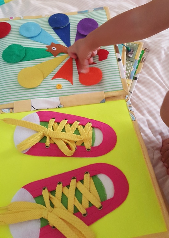 Не проходит любовь к фетровой книге. Здесь распределяем детальки по цветам с помощью липучек, крючков и кнопок: