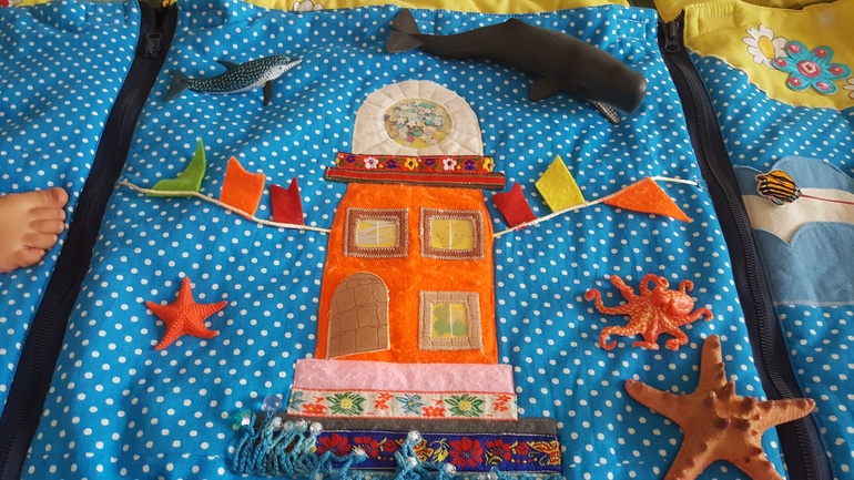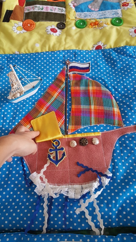 Дальше путешествуем по морю, знакомимся с предметами морской тематики (якорь, мачта, паруса). Размещаем морских обитателей.