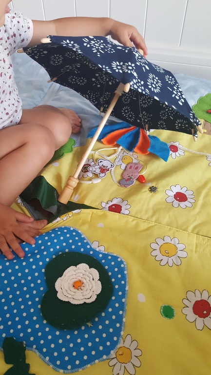 Учимся раскрывать и закрывать игрушечный зонтик:
