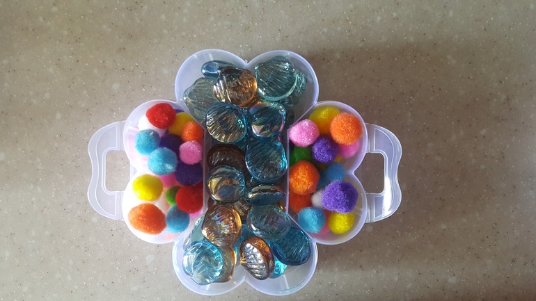 Камушки из последней коробочки распределяли в лотки с помощью ложки: